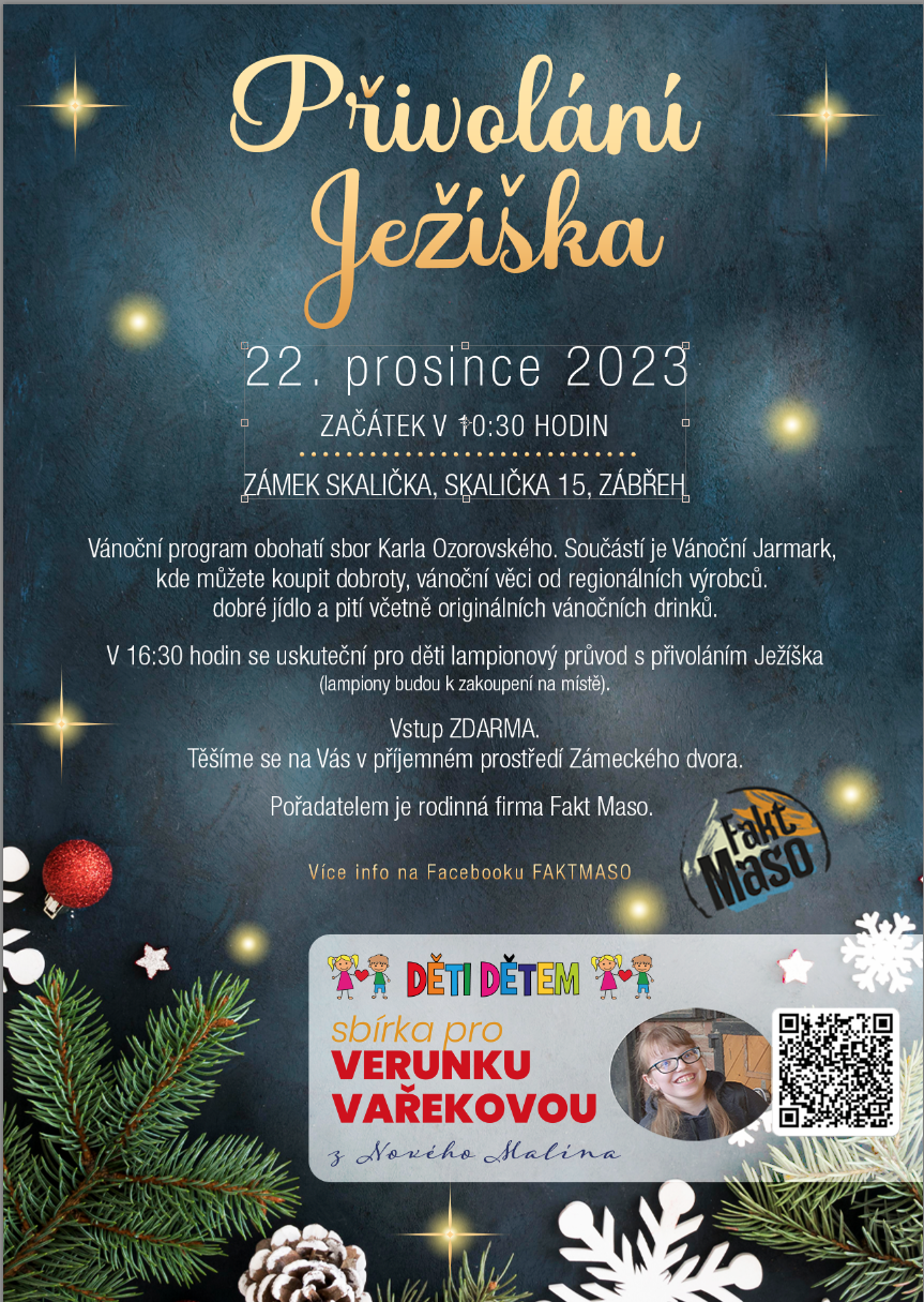 Vánoční jarmark spojený s charitativní sbírkou na nádvoří zámku Skalička.