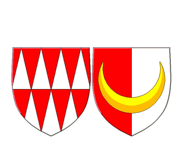 Znak Jana VII.: Vpravo je v červeném štítu 7 (4,3) stříbrných kuželů. Vlevo je v červeno-stříbrně polceném štítu stoupající zlatý půlměsíc