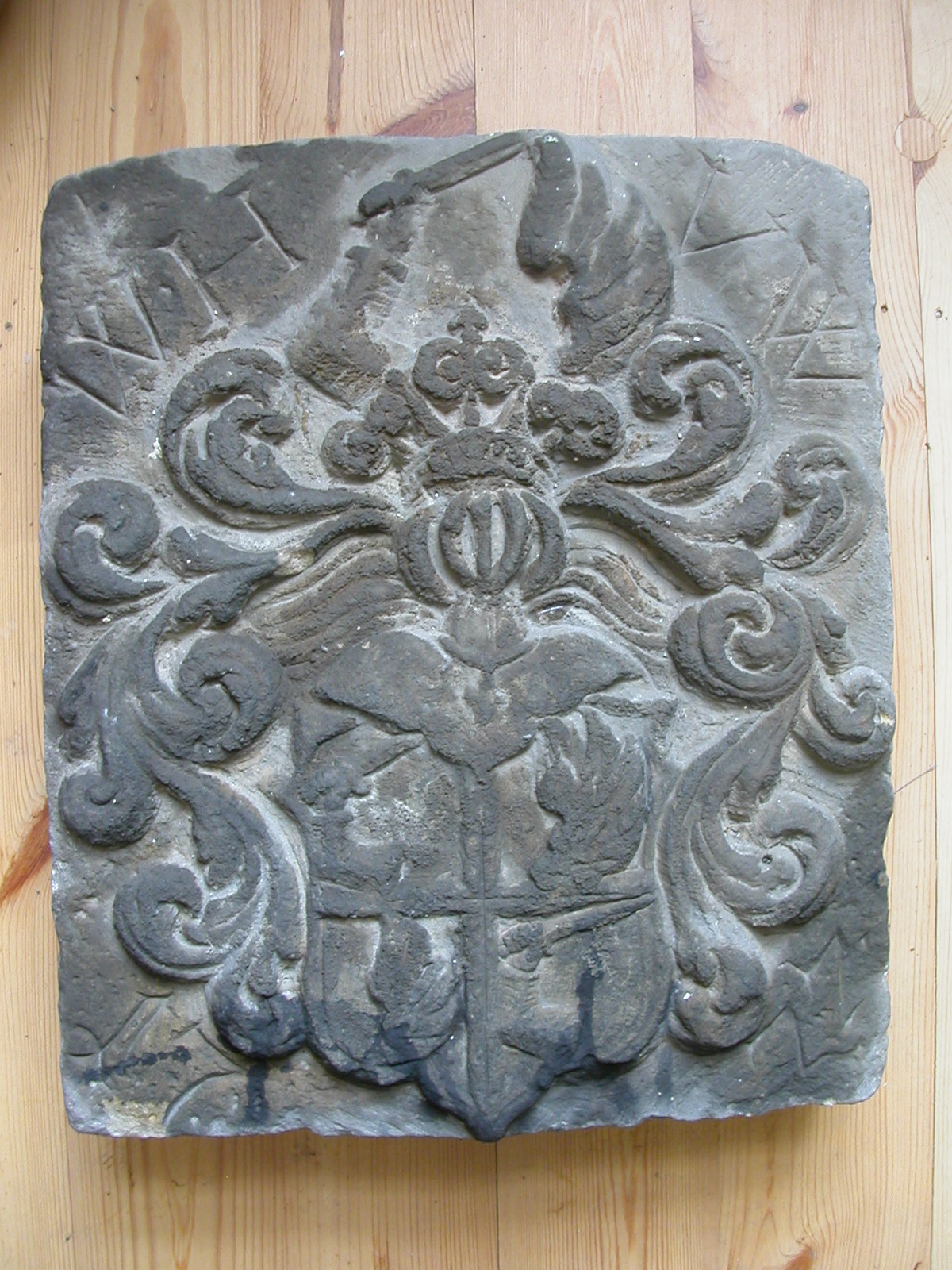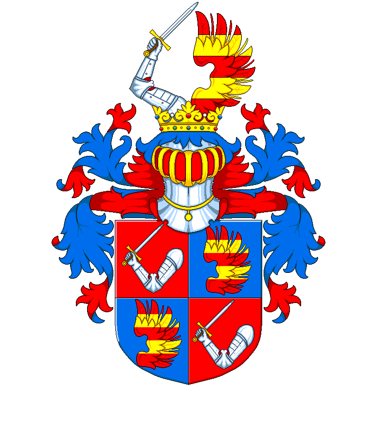 Popis erbu výše: Štít je červeno-modře čtvrcen. V 1. a 4. poli je v lokti ohnutá obrněná paže držící meč. Ve 2. a 3. poli je červené křídlo se 2 zlatými břevny. Na štítu je korunovaná turnajská přilba s modro-červenými přikrývadly. Klenotem je vpravo v lokti ohnutá obrněná paže držící meč a vlevo červené křídlo se 2 zlatými břevny.