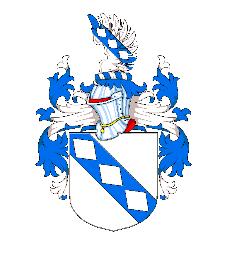 Popis erbu výše: Ve stříbrném štítu je kosmé modré břevno, v němž jsou 3 kosmo položené stříbrné routy. Na štítu je kolčí přilba s modro-stříbrnou točenicí a přikrývadly. Klenotem je stříbrné křídlo s kosmým modrým břevnem, v němž jsou 3 kosmo položené stříbrné routy.