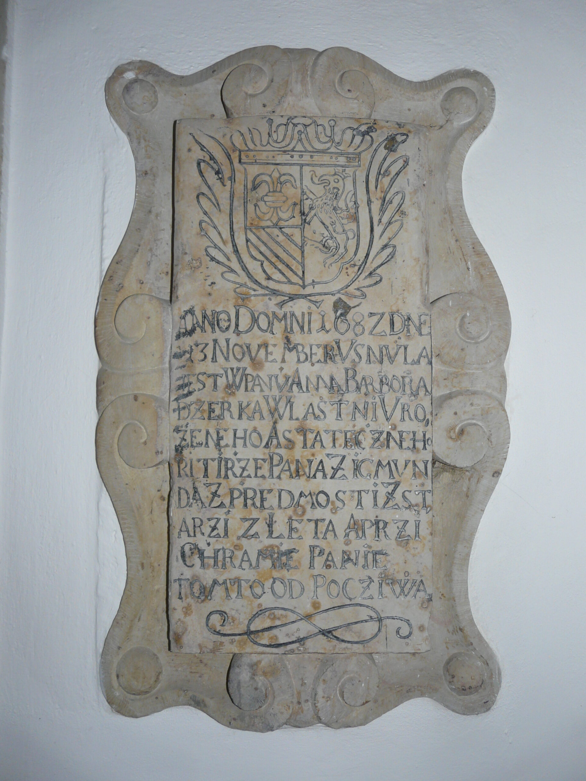 Náhrobní kámen vnučky Martina Půhončího, Anny Barbory Půhončí z Předmostí z kostela v Lošticích