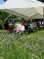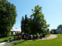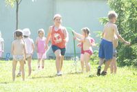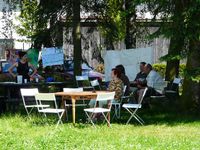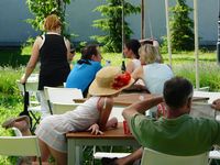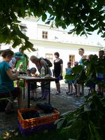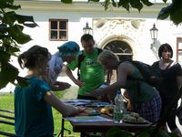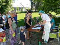 Slunečné letní odpoledne na Skaličce organizované rodinným centrem HNÍZDO: vernisáž výstavy "Zábřeh očima rodiny" a konečné stanoviště toulky "Pohádkovým lesem" (neděle, 8.června 2014)