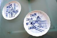 z obrázkových bločků čínské výroby, kterými umělec sarkasticky glosuje